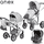 Візочок 2в1 включає в себе шасі, люльку, прогулянковий блок, дощовик, москітну сітку, рюкзак для мами та корзину для покупок.Тканина у візочку водовідштовхуюча.