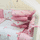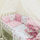 Підодіяльник, наволочка і простирадло, пошиті з натурального бавовняного матеріалу. Простирадло на гумці ідеально повторює форму матраца в ліжечку.