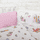 Підодіяльник, наволочка і простирадло, пошиті з натурального бавовняного матеріалу. Простирадло на гумці ідеально повторює форму матраца в ліжечку.