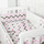 Підодіяльник, наволочка і простирадло, пошиті з натурального бавовняного матеріалу. Простирадло на гумці ідеально повторює форму матраца в ліжечку.